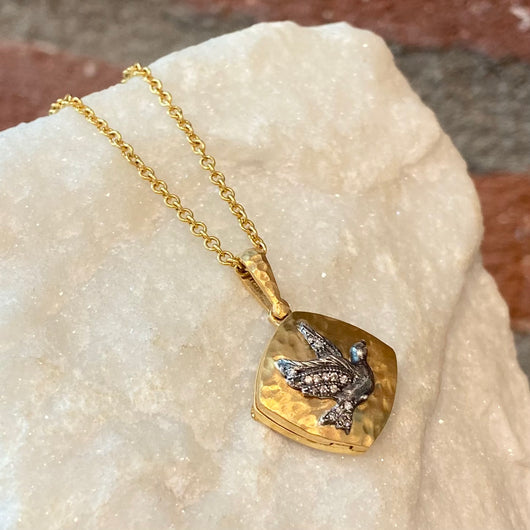 Arman 22kt Gold and Diamond Square Baby Bird Locket Necklace