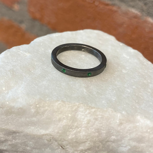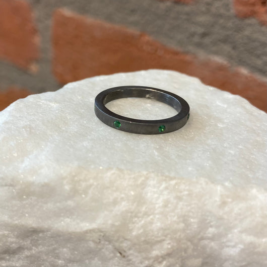 EYG Collection Black Rhodiumed Silver and Tsavorite Band