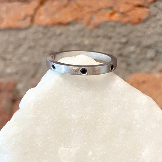 EYG Collection Rhodiumed Silver and Blue Sapphire Band