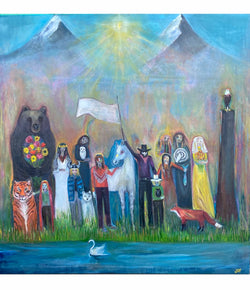 Abstracted art with spirit and soul. Jessica's paintings reflect the deep connection to the world she lives in. Wilderness and nature play an important role in her works. Owls and bears and birds and figures in dream-like scenarios are enthralling to the viewer.