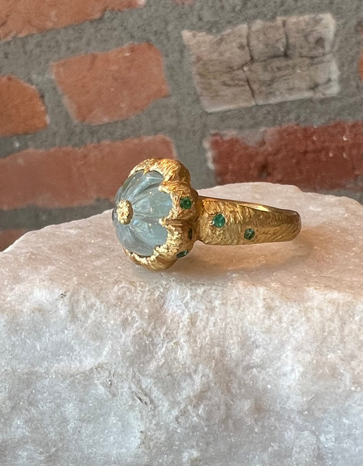 Karen Liberman Carved Aquamarine Flower Ring