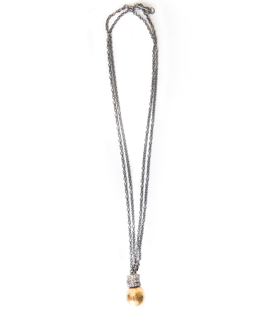 24 karat gold hammered ball and oxidized sterling silver and diamond rondels.
